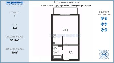 ID: 1916013 ПРОСТОРНАЯ СВЕТЛАЯ КВАРТИРА Студия-"однушка" с мебелью и техникой, огромным балконом и гардеробной. Заезжай и живи! (Пушкинский р-н) Вам не нужна "клетушка" 20 м — у вас будет полноценное пространство 35,5 м, где есть и спальная зона, гардеробная, кухня, санузел и даже возможно оборудовать свой кабинет на балконе! Что получаете прямо сейчас: • Фактически 1-комнатная квартира — студия правильной формы, удобна для меблировки, кухня зонирована стеной. • Отдельная гардеробная (в коридоре), оборудованная полками для вещей, штангами и платяным шкафом с выдвижными ящиками — освобождает комнату от громоздких шкафов. • Большой балкон — можно сделать зону отдыха, зимний сад или дополнительное хранение. • Ремонт, мебель, техника — берите ключи и заезжайте. Чисто, уютно. • 4-й этаж из 4 (кирпичный дом, 2011 г.) — последний этаж, но нет проблем с соседями сверху, плюс отличный обзор и тишина. ЛОКАЦИЯ— тишина рядом с городом: •Зелёный район, в стороне от трасс. Выходите из дома — вокруг парки, до Пушкина и Павловска 10 минут езды. Автобусная остановка рядом с домом, на автобусе до метро "Шушары" или "Купчино" 30 минут. • Всё рядом: "Перекрёсток", "Лента", ТРЦ "Green Park" (фитнес с бассейном, рестораны). • Детсад, школы, поликлиника — всё в пешей доступности. Строится большая взрослая поликлиника, спортивный комплекс школы олимпийского резерва. • Бонус: строится трамвайная линия "Славянка" до метро Купчино — транспортная доступность вырастет. ДОМ И СОСЕДИ: Чистая парадная с цветами, приличные, спокойные соседи, есть места для хранения колясок, велосипедов. Пандус. Двор с детской площадкой, всегда есть места для парковки рядом с домом. КОМУ ПОДОЙДЕТ: Молодой паре, инвестору (отличная ставка для аренды) или тому, кто устал от тесных студий и хочет свой угол с воздухом. ЮРИДИЧЕСКАЯ ЧИСТОТА: (Документы готовы к сделке): • Собственники: 1 взрослый средних лет. • Форма собственности: ДКП с 2011 г. • Без обременений, без долгов, материнский капитал не использовался, перепланировок не было, несовершеннолетние не зарегистрированы. • Подходит под любую форму оплаты, все виды ипотек, субсидий и сертификатов. • Возможен разумный торг. ЗАИНТЕРЕСОВАЛО? Звоните и записывайтесь на просмотр! Отличный вариант для комфортной жизни или инвестиций. Сохраняйте в избранное, чтобы не потерять! Поможем с одобрением и оформлением ипотеки! Компания "АДВЕКС" гарантирует вам юридическую чистоту сделки и комфортное ее проведение.
