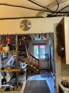 Дом из материала сэндвич панелей, общей площадью 105 м². Дом двухэтажный, а также есть мансарда (что позволяет хранить сезонные вещи, около 16м2). К дому сделана функциональная теплая пристройка с двумя комнатами (в одной комнат установлен дровяной камин (с соблюдением противопожарной безопасности).