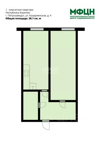 Код объекта: 1889156. Планируете продать недвижимость? Мы бесплатно оценим ваш объект и подготовим официальный отчет на бланке МФЦН. Напишите в сообщении "Оценка" или позвоните по телефону из объявления. К покупке предлагается 1 - комнатная квартира, расположенная на 2-м этаже 6 - этажного дома, находящаяся по адресу: город Петрозаводск, ул. Казарменская дом 4, ЖК "Александровский". О квартире: - общая площадь: 38,1 кв. м, жилая: 18 кв. м; - кухня: 12 кв. м; - дом кирпично-монолитный, построен в 2016 году; - центральные системы водоснабжения водоотведения и отопления; - на кухне электрическая плита. Преимущества квартиры: - недавно проведен косметический ремонт; - все окна: стеклопакеты; - совмещенный санузел; - низкие коммунальные платежи; - отличная шумоизоляция. Инфраструктура: - квартира расположена в центре города Петрозаводска; - отличная транспортная и пешая доступность; - в непосредственной близости к дому находятся школа и детский сад; - в шаговой доступности аптеки, магазины, поликлиника 2, места для прогулок и занятия спортом. О сделке: - один взрослый собственник; - прямая продажа; - никто не зарегистрирован и не проживает, квартира освобождена; - быстрый выход на сделку. Звоните, задавайте вопросы в сообщениях и записывайтесь на просмотр в любое удобное для Вас время! МФЦН — Для главных сделок в жизни!
