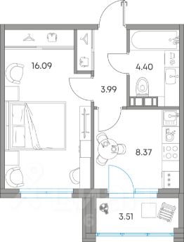 Удобная планировка даёт преимущество обставить мебелью и техникой как вам удобно.
