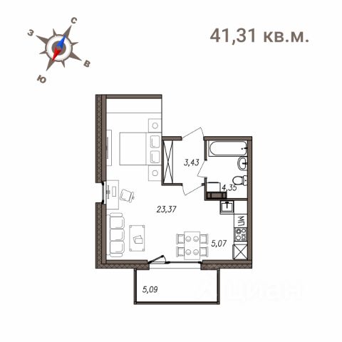 • ✅ Объект наибольшей площади: 41,3 м²