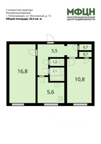 Код объекта: 1984339. Планируете продать недвижимость? Мы бесплатно оценим ваш объект и подготовим официальный отчет на бланке МФЦН. Напишите в сообщении "Оценка" или позвоните по телефону из объявления. К покупке предлагается 2 - комнатная квартира, расположенная на 4-м этаже 5 - этажного дома, находящаяся по адресу: город Петрозаводск, ул. Кондопожская, дом 6. О квартире: - общая площадь: 43,5 кв. м, жилая: 27 кв. м; - комнаты: 16,3 и 10,7 кв. м; - кухня: 5,8 кв. м; - дом панельный, построен в 1971 году; - центральные системы холодного водоснабжения водоотведения и отопления; - на кухне электроплита с узаконенной установкой. Преимущества квартиры: - комнаты раздельные, что позволяет создать просторное пространство, изолированная кухня; - квартира в жилом состоянии; - раздельный санузел; - не высокие коммунальные платежи; - счетчики поменяны и прошли поверку; - чистый подъезд. Инфраструктура: - в шаговой доступности школы, детские сады, множество учебных заведений; - до центра города 10 минут пешим шагом; - ТЦ "Лента"- различные магазины и все необходимое для комфортной жизни в районе; - транспортная доступность во все точки города. О сделке: - один взрослый собственник; - без долгов и обременений; - быстрый выход на сделку. Звоните, задавайте вопросы в сообщениях и записывайтесь на просмотр в любое удобное для Вас время! МФЦН - Для главных сделок в жизни!