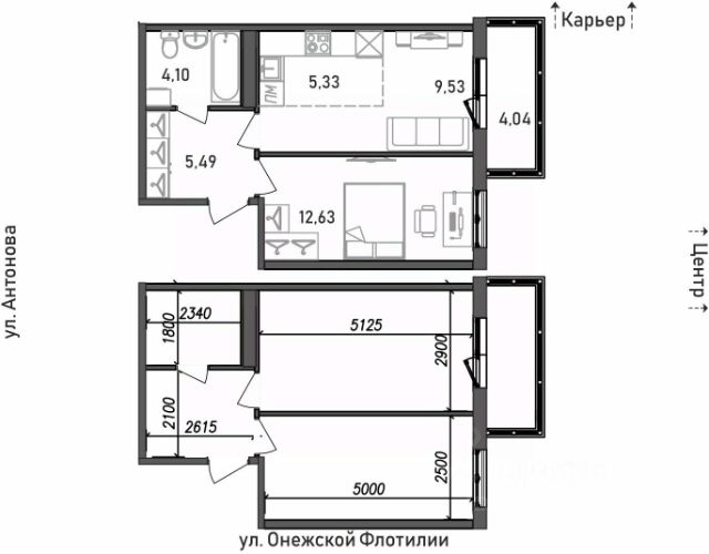 — Общая площадь: 43,3кв.м. (площадь без балкона - 37,9 кв.м.)