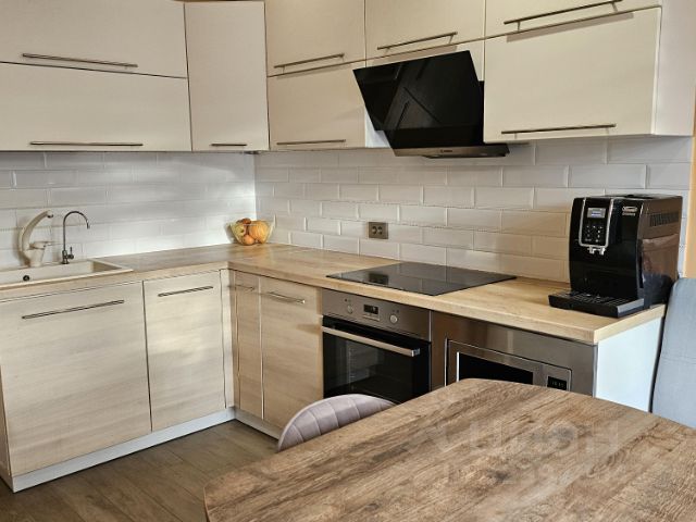 - просторная кухня 12 кв.м., встроенная техника, холодильник "side by side", "теплый пол";