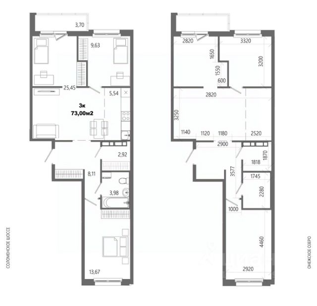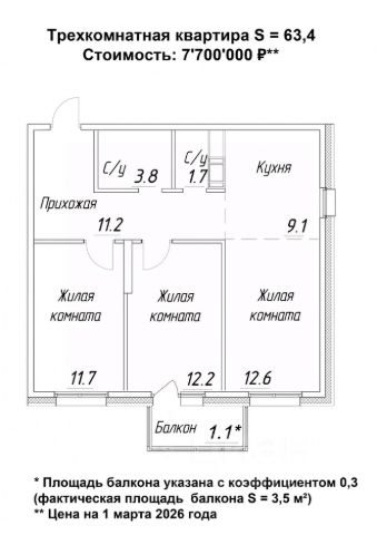 - В квартире две лоджии по 3,5 м².