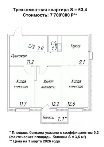 Не упустите возможность стать владельцем этой замечательной квартиры!