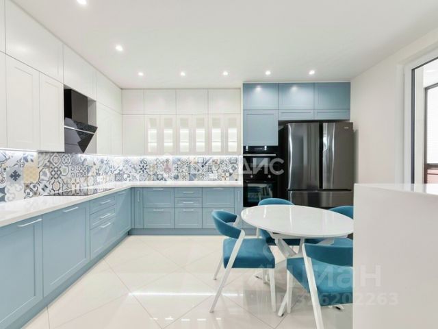 - Просторная кухня с кухонным гарнитуром сделанным по индивидуальному заказу с австрийской фурнитурой Blum с доводчиками и встроенной бытовой техникой (варочная панель, посудомойка, духовой шкаф, стильная вытяжка).