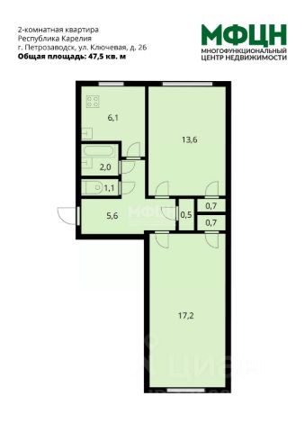 - комнаты: 17,5; 14,2 и 2,5 кв. м;