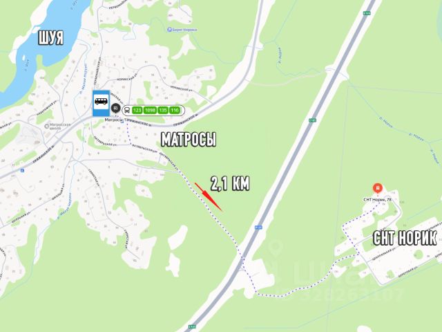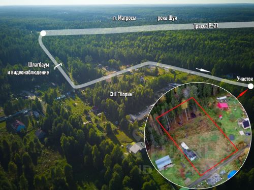 Деревня стоит на слиянии двух рек. Участок находится на высоком месте, сухой, с легким уклоном и отличным видом на лесистые холмы и реку. По тылу граничит с бором, на участке также есть взрослые деревья.