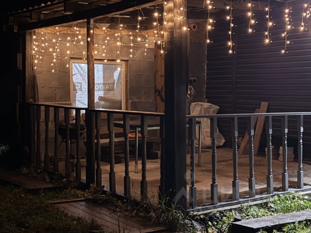Баня 3,7х7,2 м (комната отдыха с камином 2,3х3,33, моечная 2,3х1,5, парилка 1,7х2,3), коридор с зоной для работы или отдыха, жилая комната на втором этаже 4,78х2,56, подведена вода, построена новая терраса. В комнате 2 кровати и комод, есть ниша в коридоре на втором этаже, в комнате на первом этаже мебель собирается в двуспальное место. Одновременно в доме и бане могут разместиться 10 человек.