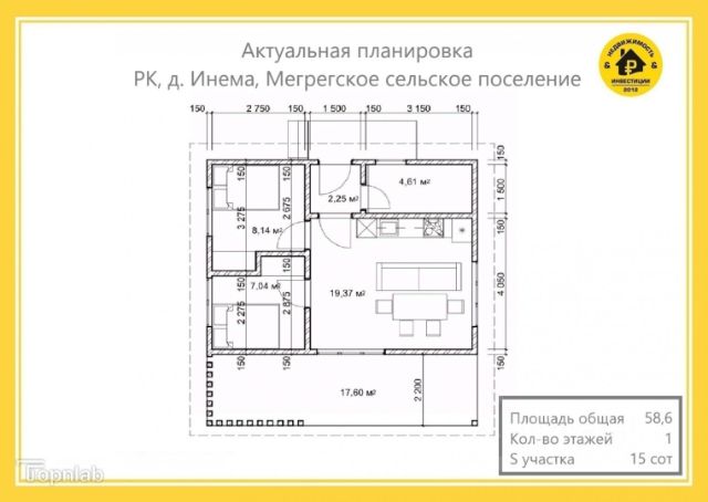 Компания "Недвижимость и Инвестиции" предлагает Вашему вниманию новый жилой дом д. Инема! !!!ГАРАНТИЯ ЛУЧШЕЙ ЦЕНЫ!!! !!!ПРЯМАЯ ПРОДАЖА ОТ СОБСТВЕННИКА!!! !!!НИКАКИХ ДОПОЛНИТЕЛЬНЫХ КОМИССИЙ!!! ВОЗМОЖНА РАССРОЧКА ОПЛАТЫ ОТ СОБСТВЕННИКА (подробности по телефону) Уединенное место карельской природы для отдыха и комфортного проживания расположено в Республика Карелия, Олонецкий национальный муниципальный район, Мегрегское сельское поселение, д. Инема. Кадастровый номер участка: 10:14:0080701:124 Кадастровый номер дома: 10:14:0080701:128 Координаты для навигатора: 6054.84'N, 334.61'E Категория земель: Земли населенных пунктов Вид разрешенного использования: Индивидуальные жилые дома, территориальная зона Ж2 На участке расположен НОВЫЙ одноэтажный жилой дом - 58,9 кв.м. (площадь без террасы - 41,41 кв.м.). Характеристики дома: — Год постройки: 2023 г. — Фундамент: свайный. — Материал стен СИП-панели. — Фасад: планкен. Покрашен эстонской краской премиального уровня — Крыша - гибкая черепица — Окна: двухкамерные пластиковые стеклопакеты. — Входная дверь: металлическая с терморазрывом — Терраса выложена террасной доской и окрашена террасным маслом — Возможная планировка: кухня-гостиная с выходом на террасу, две отдельные комнаты, коридор, санузел, тех. помещение. Установлены межкомнатные стены, однако планировку одного из домов можно изменить под Ваши пожелания. За дополнительную плату поможем сделать скважину, септик. Характеристики участка: — Площадь участка: 15 сот. СОБСТВЕННОСТЬ. — Участок ровный, сухой, правильной геометрической формы. — Имеется дренажная канава. О месте: Деревня Инема — деревня в составе Мегрегского сельского поселения Олонецкого национального района Республики Карелия. Расположена на берегу одноименной реки. На реке ловят рыбу, в окрестных лесах собирают грибы и ягоды, а также заготавливают лекарственные растения. Из видов рыб в реке могут быть ерши, налимы, окуни, щуки, лещи, плотва. Деревня Инема граничит с деревней Мегрега - Административный центр Мегрегского сельского поселения. Там располагаются: ФАП, школа, детский сад, магазины крупных торговых сетей, пункты выдачи озон, почта России. Транспортная доступность: — От Петрозаводска до объекта: 148 км. по асфальтированной трассе — От Олонца до объекта: 13 км. — От Лодейного поля до объекта: 44 км. — От Санкт-Петербурга до объекта: 261 км. Звоните! Задавайте вопросы. О нас: Работаем на рынке недвижимости более 13 лет. Деятельность компании застрахована. Индивидуальный подход к каждому клиенту! Арт. 105531877