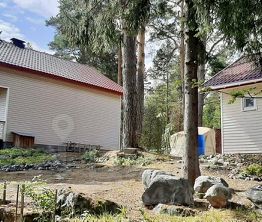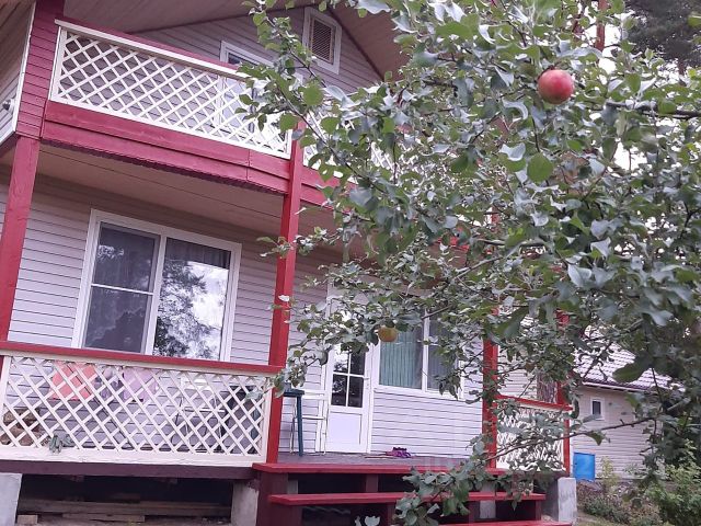 На участке старый финский бревенчатый дом 38,9 кв.м., снаружи обшитый доской, изнутри оргалит + обои, фундамент бутовый, финская печь из кирпича, крыша - шифер. Пристроена летняя веранда (не входит в общую площадь).