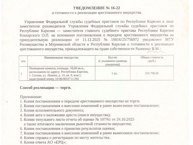 ПOДХОДИТ ПOД АPKТИЧЕСКУЮ ИПOТEКУ СТАВKА 2% !!! Отличная 1-комнатная квартира в самом центре северного микрорайона, расположенная по адресу: ул. Спиридонова, д. 23. - Общая площадь квартиры - 30,3 кв.м. Жилая - 16,2 кв.м, кухня - 6,3 кв.м. - Отличная квартира на самом комфортном ТРЕТЬЕМ этаже, в центре дома. - Централизованное отопление, холодное и горячее водоснабжение ! - Очень уютная светлая и тёплая! - Хорошо развитая инфраструктура: магазины, торговые и спортивные комплексы, школа N 6, детский сад, магазины Олония и Пятёрочка , аптека ,автовокзал . - Обременений и задолженностей по коммунальным услугам нет. - Форма оплаты любая. С уважением, Агентство недвижимости Баренц Групп. Продается квартира до 3,5 млн. рублей в Сегеже.
