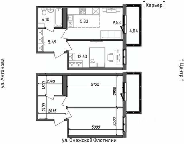 -> Планировка включает: спальню, 1 вместительную гардеробную, просторную и светлую кухню-гостиную, санузел, остекленную лоджию.