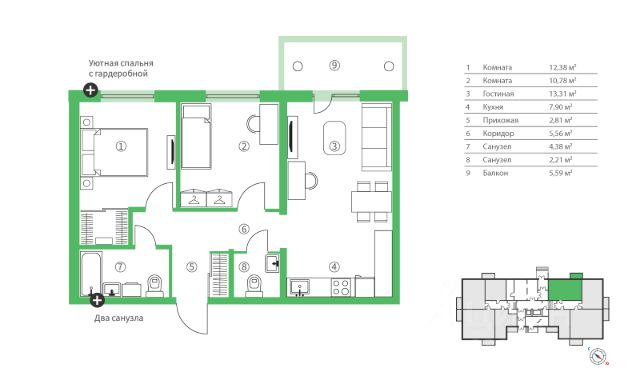 Продаётся 2-комнатная квартира в строящемся доме (5.1), срок сдачи: IV-кв. 2026, общей площадью 43.48 кв.м., на 7 этаже. Новый жилой комплекс "Сампо" от застройщика "Стройинвест КСМ" органично сочетает городской комфорт и очарование жизни загородом. Здесь каждый сможет найти то, что ему необходимо: Для семей с детьми - детский сад, встроенный в один из домов ЖК и новая школа, построенная на территории микрорайона; Для молодежи - доступность центра и разнообразие функциональных планировок; Для старшего поколения - близость магазинов, тишина и покой. Внутренняя инфраструктура ЖК "Сампо" гармонично сочетает близость к природе и самодостаточность. На территории комплекса разместятся: Торгово-развлекательный центр с продовольственным магазином; Точки с товарами и услугами первой необходимости; Также стоит отметить, что дома комплекса оборудованы собственными автономными котельными, что позволит жителям самостоятельно определять сроки отопительного сезона и экономить на коммунальных платежах.