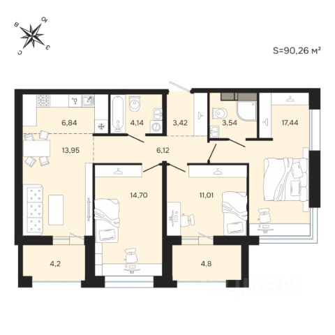 • ✅ Объект наибольшей площади: 90,3 м²
