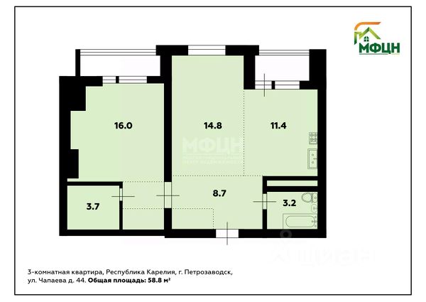 Показ в удобное для вас время Квартира на улице Чапаева в городе Петрозаводск.