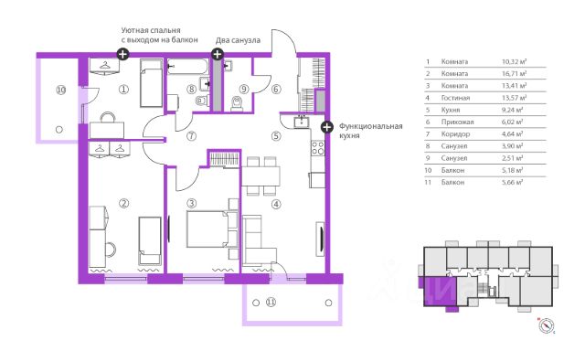 Продаётся 2-комнатная квартира в строящемся доме (5.4), срок сдачи: I-кв. 2027, общей площадью 54.02 кв.м., на 9 этаже. Новый жилой комплекс "Сампо" от застройщика "Стройинвест КСМ" органично сочетает городской комфорт и очарование жизни загородом. Здесь каждый сможет найти то, что ему необходимо: Для семей с детьми - детский сад, встроенный в один из домов ЖК и новая школа, построенная на территории микрорайона; Для молодежи - доступность центра и разнообразие функциональных планировок; Для старшего поколения - близость магазинов, тишина и покой. Внутренняя инфраструктура ЖК "Сампо" гармонично сочетает близость к природе и самодостаточность. На территории комплекса разместятся: Торгово-развлекательный центр с продовольственным магазином; Точки с товарами и услугами первой необходимости; Также стоит отметить, что дома комплекса оборудованы собственными автономными котельными, что позволит жителям самостоятельно определять сроки отопительного сезона и экономить на коммунальных платежах.