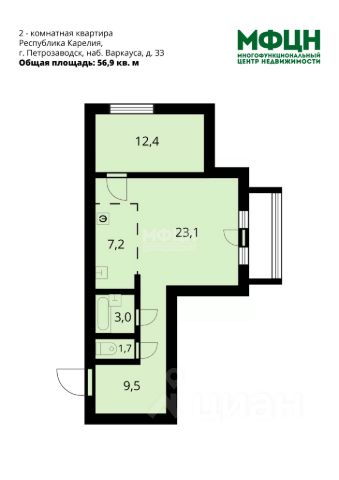 Код объекта: 1923819. Планируете продать недвижимость? Мы бесплатно оценим ваш объект и подготовим официальный отчет на бланке МФЦН. Напишите в сообщении "Оценка" или позвоните по телефону из объявления. К покупке предлагается 2 - комнатная квартира, расположенная на 3-м этаже 10 - этажного дома, находящаяся по адресу: город Петрозаводск, набережная Варкауса, дом 33. О квартире: - общая площадь: 56,9 кв. м, жилая: 35,5 кв. м; - комнаты: 23,1 и 12,4 кв. м; - кухня: 7,2 кв. м; - дом кирпичный, построен в 2010 году; - центральные системы водоснабжения, водоотведения и отопления; - на кухне электрическая плита. Преимущества квартиры: - недавно проведен косметический ремонт; - установлен новый кухонный гарнитур с техникой; - все окна стеклопакеты; - просторный балкон с алюминиевым остеклением; - раздельный санузел; - тихие и доброжелательные соседи. Инфраструктура: - рядом с домом остановка общественного транспорта; - в пешей доступности школа и детский сад; - в шаговой доступности аптеки, магазины. О сделке: - прямая продажа; - никто не зарегистрирован и не проживает, квартира освобождена; - один взрослый собственник; - без залогов и обременений; - быстрый выход на сделку. Звоните, задавайте вопросы в сообщениях и записывайтесь на просмотр в любое удобное для Вас время! МФЦН — Для главных сделок в жизни!