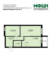 Пространство: общая площадь 61,2 кв. м. Высокие потолки (2,7 м) создают ощущение объема и свободы. Две просторные изолированные комнаты (17,9+15,8 кв. м) выходят на разные стороны, обеспечивая идеальный микроклимат и естественное освещение