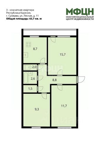 За объект уже внесли аванс Код объекта: 1667009. Планируете продать недвижимость? Мы бесплатно оценим ваш объект и подготовим официальный отчет на бланке МФЦН. Напишите в сообщении "Оценка" или позвоните по телефону из объявления. К покупке предлагается 2 - комнатная благоустроенная квартира, расположенная на 2-м этаже 5 - этажного дома, находящаяся по адресу: город Суоярви, ул. Кайманова дом 13. О квартире: - общая площадь: 46,1 кв. м, жилая: 30,2 кв. м; - комнаты: 12,2 и 17,6 кв.м; - кухня: 6,6 кв. м; - дом панельный, построен в 1979 году; - центральные системы холодного водоснабжения водоотведения и отопления. Преимущества квартиры: - обладает функциональной планировкой, которая позволяет организовать пространство по вашему вкусу; - изолированная кухня; - квартира требует ремонта, кроме одной из комнат, что дает возможность оформить ее по своему вкусу и усмотрению; - имеется балкон, где вы можете наслаждаться свежим воздухом и прекрасным видом; - раздельный санузел: дополнительный комфорт для большой семьи; - чистый подъезд и ухоженный двор. Инфраструктура: - рядом расположены: магазины, школы, детские сады, парки, спортивный комплекс, что делает комфортным проживание для семьи с детьми, удобные торговые точки и Сбербанк; - также в городе имеется современный физкультурно-оздоровительный комплекс; - живописная природа города с красивейшими видами, в том числе и на озеро, никого не оставит равнодушными. О сделке: - прямая продажа; - никто не зарегистрирован и не проживает, квартира освобождена. Звоните, задавайте вопросы в сообщениях и записывайтесь на просмотр в любое удобное для Вас время! МФЦН - Для главных сделок в жизни! Продается квартира на вторичном рынке в Суоярви.