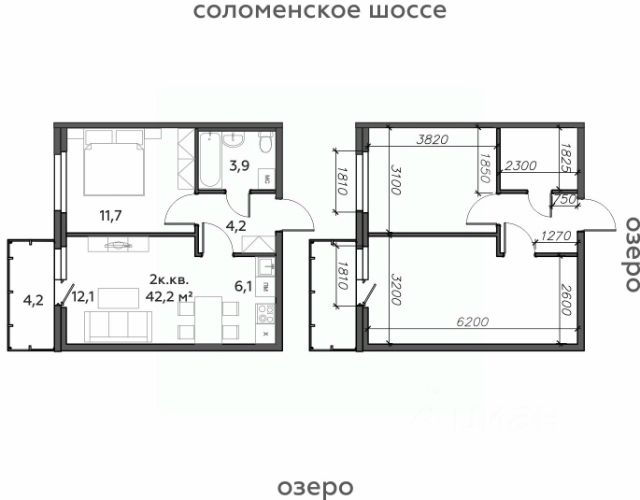 — Общая площадь: 43,3кв.м. (площадь без балкона - 37,9 кв.м.)