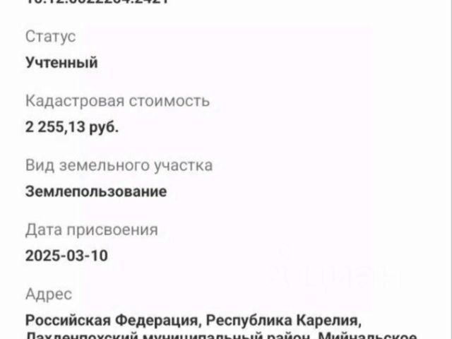 10:12:0051301:3685, площадь 1 250 м2, стоимость 1,6 млн руб.