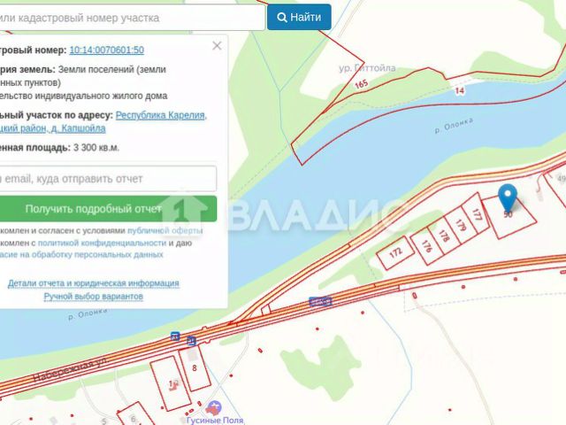 Код объекта: 1769169. К покупке предлагается земельный участок 33 сотки в д. Капшойла в 10 км от города Олонца у берега реки Олонки! - Живописное место, за участком находится "зона покоя гусей". - Тихая и спокойная локация. - Ровный участок - отличный вариант под постройку дома. - К участку подведено электричество, рядом газ. - Земли ИЖС. - Есть возможность подключения к газопроводу. - Близкое расположение к реке. - Один взрослый собственник. - Межевание сделано. - Документы готовы к сделке. Кадастровый номер: 10:14:0070601:50 Категория и виды разрешенного использования: * Земли населенных пунктов * Для индивидуальной жилой застройки * строительство индивидуального жилого дома. Можно строить гостевые дома. Рядом Ладога, возможно спуститься к ней по реке. Река рыбная (лещ, судок, окунь), на нерест весной идет корюшка прямо напротив участка. Остались вопросы? звоните!