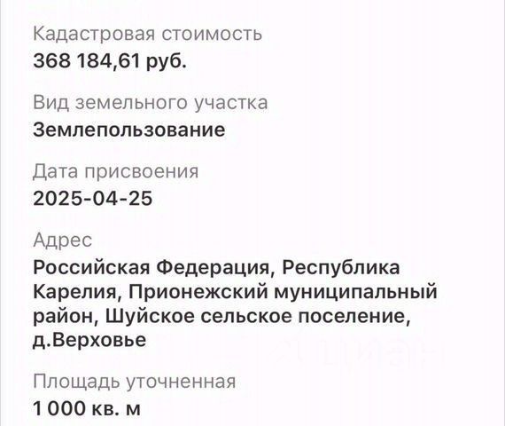Код объекта: 1889619. Планируете продать недвижимость? Мы бесплатно оценим ваш объект и подготовим официальный отчет на бланке МФЦН. Напишите в сообщении "Оценка" или позвоните по телефону из объявления. К покупке предлагается земельный участок, расположенный по адресу: город Петрозаводск, улица Алексея Фофанова. Кадастровый номер участка: 10:01:0160104:389 Об участке: - общая площадь: 10 соток; - назначение: ИЖС; - межевание: сделано; - подведен природный газ; - дорога: свежий асфальт 2025 года, далее 300 метров грунтовки до участка. Преимущества участка: - в черте города; - ровный, сухой участок; - разработан; - богатые грибные и ягодные места; - отличное расположение участка с видом на лесные сопки. Инфраструктура: - уникальное расположение: в черте города. О сделке: - прямая продажа; - участок отмежеван, в собственности; - быстрый выход на сделку. Звоните, задавайте вопросы в сообщениях и записывайтесь на просмотр в любое удобное для Вас время! МФЦН — Для главных сделок в жизни!