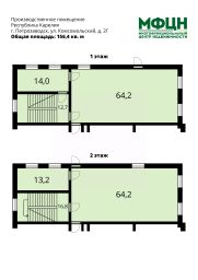 - планировка - два этажа: первый - производственная часть, второй - офисы/производство/склады;