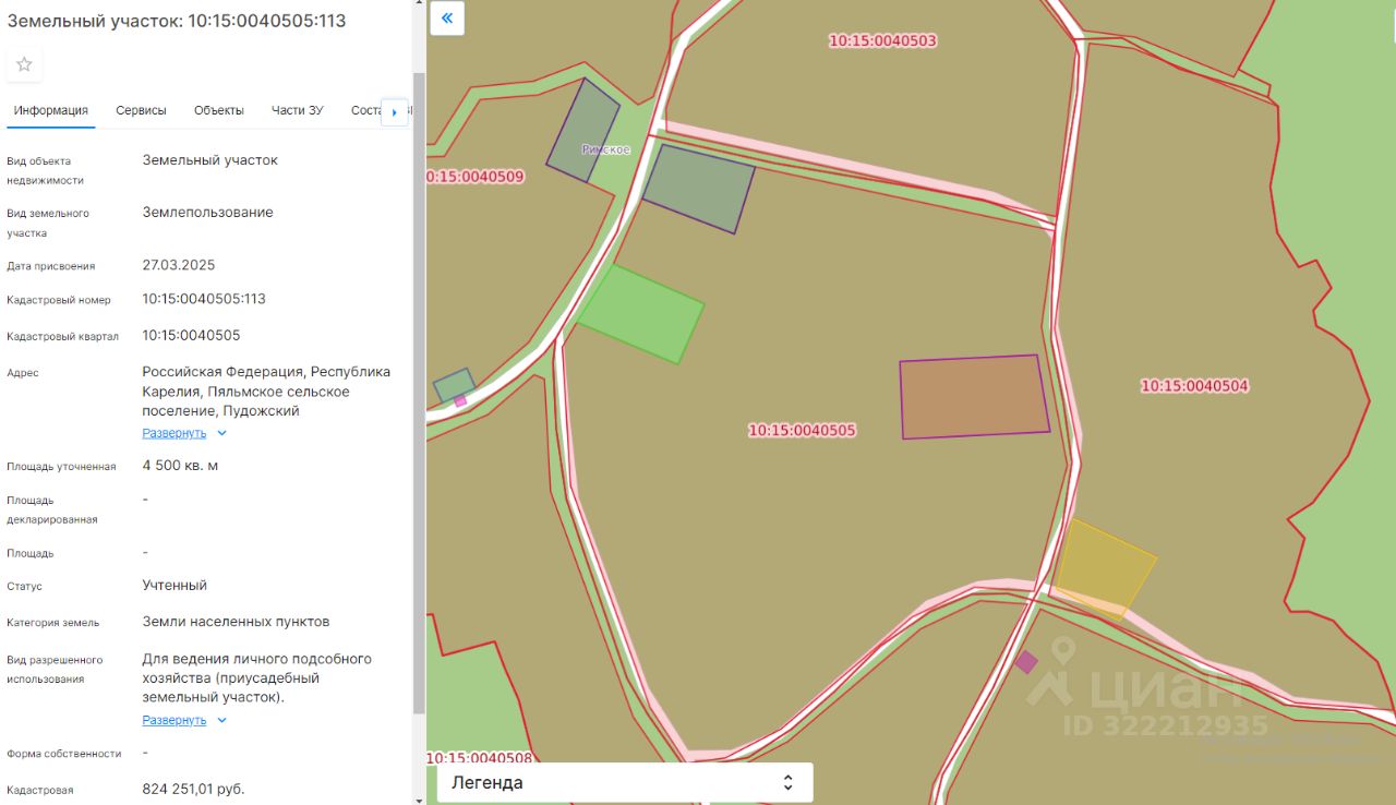 Право заключения договора аренды земельного участка из земель населенных пунктов, имеющего кадастровый номер 10:15:0040505:113, площадью 4 500 кв.м, местоположение: Российская Федерация, Республика Карелия, Пяльмское сельское поселение, Пудожский муниципальный район, деревня Римское, вид разрешенного использования "Для ведения личного подсобного хозяйства (приусадебный земельный участок)". Территориальная зона - "Зона застройки индивидуальными жилыми домами (ЖИ)".