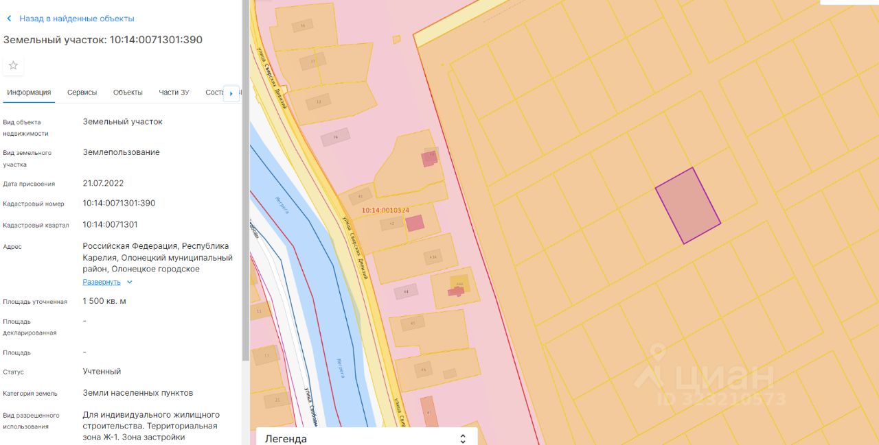 Право заключения договора аренды земельного участка из земель населенных пунктов, имеющего кадастровый номер 10:14:0071301:390, площадью 1500 кв.м, местоположение: Российская Федерация, Республика Карелия, Олонецкий национальный муниципальный район, Олонецкое городское поселение, г. Олонец, вид разрешенного использования "Для индивидуального жилищного строительства". Территориальная зона - "Зона застройки индивидуальными жилыми домами (Ж-1)".