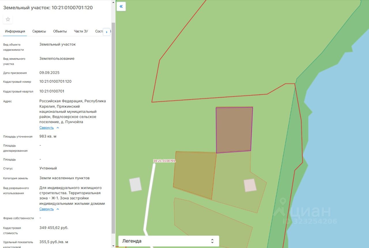 Право заключения договора аренды земельного участка из земель населенных пунктов, имеющего кадастровый номер 10:21:0100701:120, площадью 983 кв. м, местоположение: Российская Федерация, Республика Карелия, Пряжинский национальный муниципальный район, Ведлозерское сельское поселение, д. Пунчойла, вид разрешенного использования "Для индивидуального жилищного строительства. Территориальная зона - Ж-1. Зона застройки индивидуальными жилыми домами".