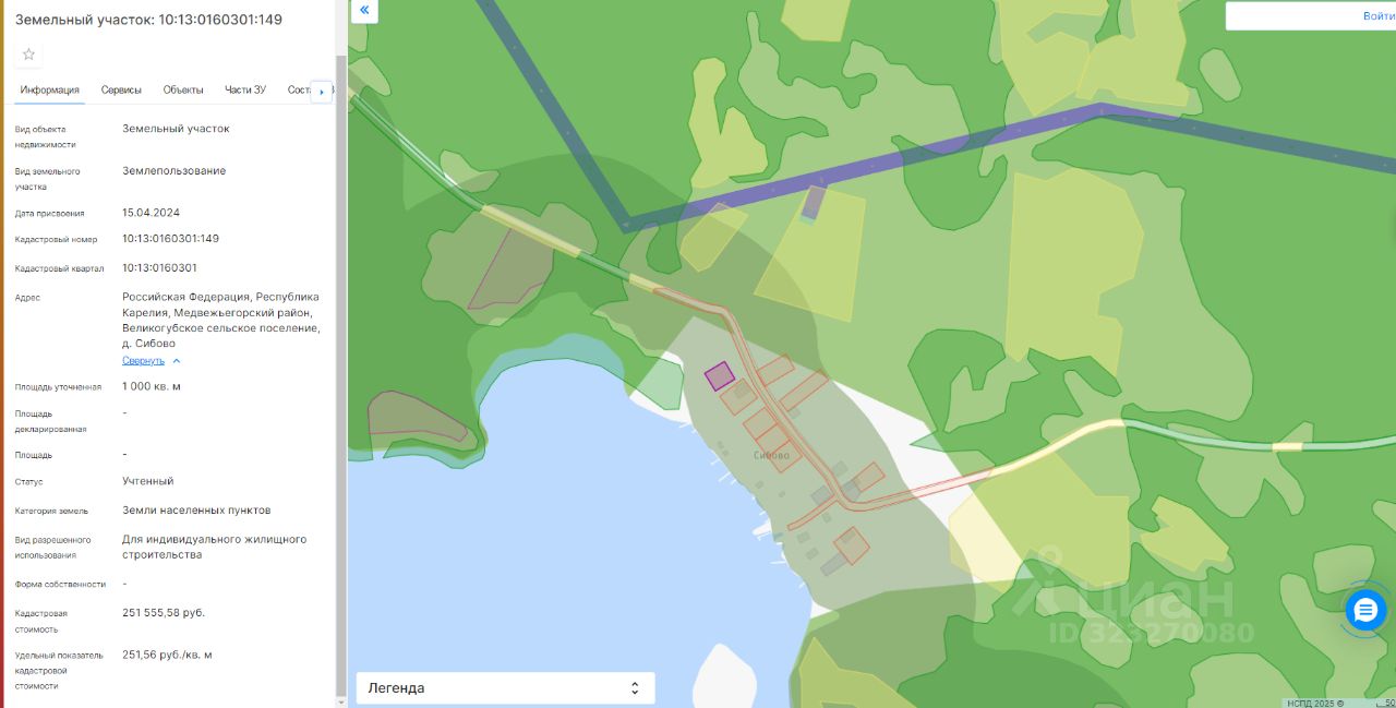 Право заключения договора аренды земельного участка из земель населенных пунктов, имеющего кадастровый номер 10:13:0160301:149, площадью 1 000 кв. м, местоположение: Российская Федерация, Республика Карелия, Медвежьегорский район, Великогубское сельское поселение, д. Сибово, вид разрешенного использования "для индивидуального жилищного строительства"