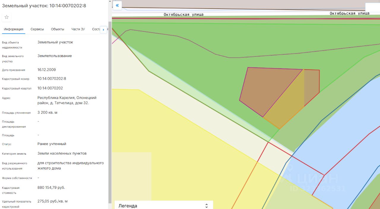 Право заключения договора аренды земельного участка из земель населенных пунктов, имеющего кадастровый номер 10:14:0070202:8, площадью 3 200 кв.м, местоположение: Республика Карелия, Олонецкий район, д. Татчелица, вид разрешенного использования  "Для строительства индивидуального жилого дома".