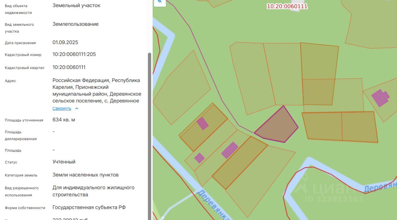 Право заключения договора аренды земельного участка из земель населенных пунктов, имеющего кадастровый номер 10:20:0060111:205, площадью 634 кв.м, местоположение: Российская Федерация, Республика Карелия, Прионежский муниципальный район, Деревянское сельское поселение, с. Деревянное, вид разрешенного использования Для индивидуального жилищного строительства