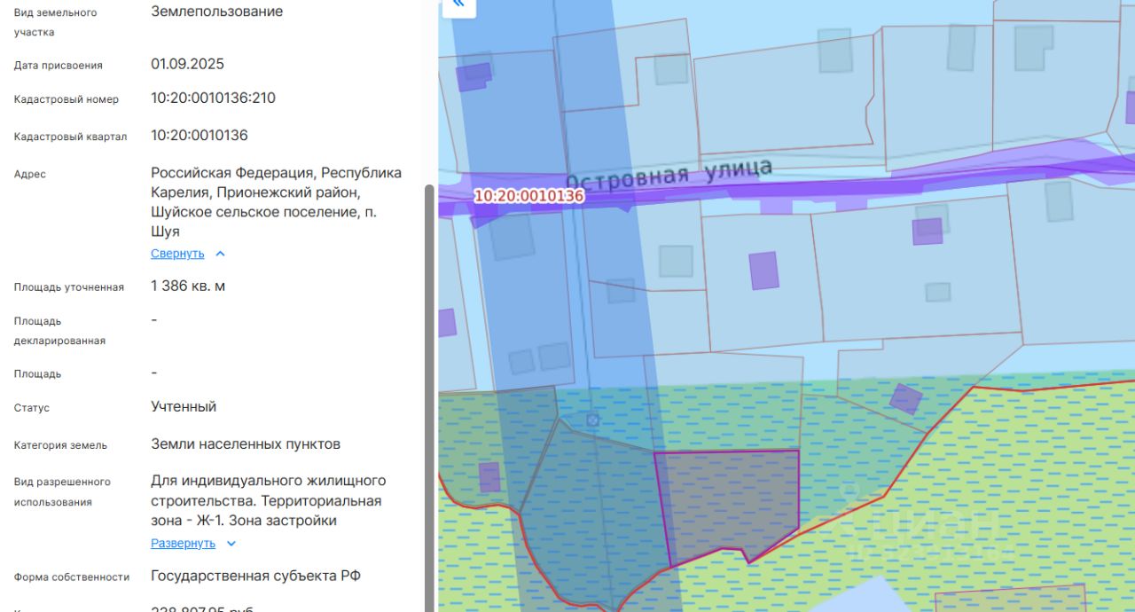 Право заключения договора аренды земельного участка из земель населенных пунктов, имеющего кадастровый номер 10:20:0010136:210, площадью 1386 кв.м, местоположение: Российская Федерация, Республика Карелия, Прионежский район, Шуйское сельское поселение, п. Шуя, вид разрешенного использования Для индивидуального жилищного строительства.