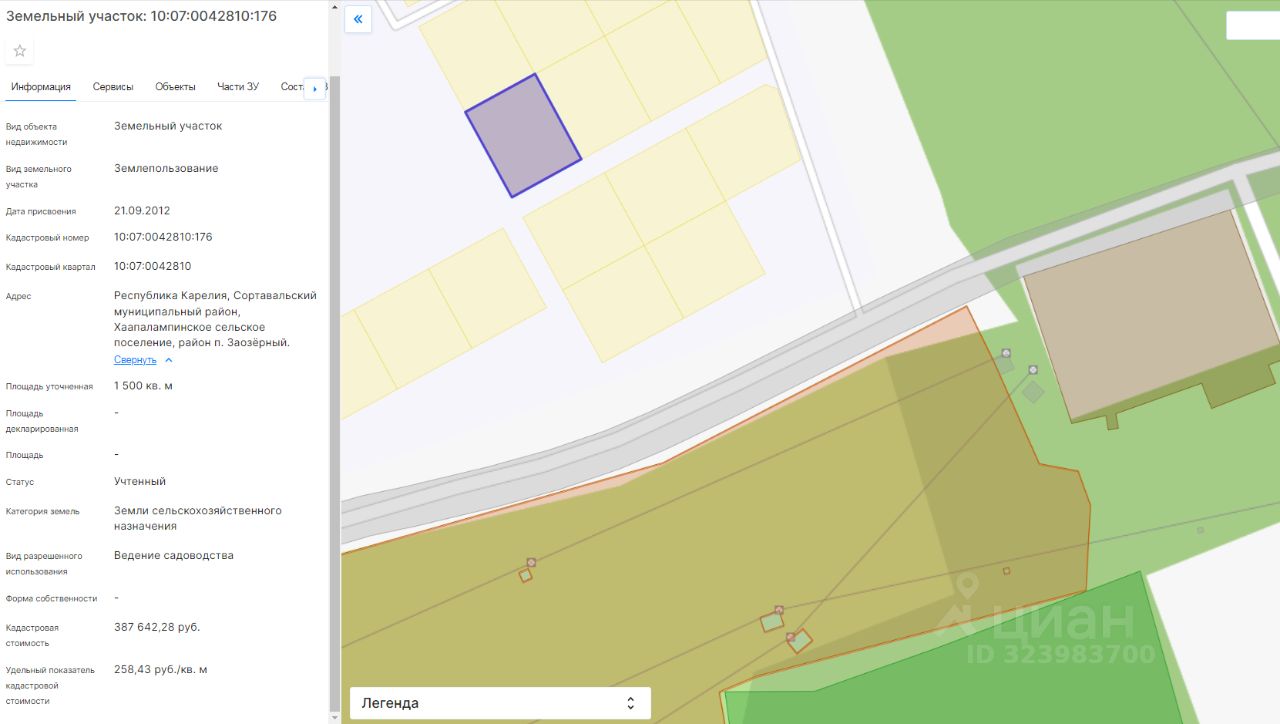 Право заключения договора аренды земельного участка из земель сельскохозяйственного назначения, имеющего кадастровый номер 10:07:0042810:176, площадью 1500 кв.м, местоположение: Российская Федерация, Республика Карелия, Сортавальский муниципальный район, Хаапалампинское сельское поселение, район п. Заозёрный, вид разрешенного использования - "Ведение садоводства"