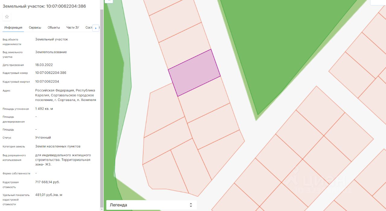 Право заключения договора аренды земельного участка из земель населенных пунктов, имеющего кадастровый номер 10:07:0062204:386, площадью 1492 кв.м, местоположение: Российская Федерация, Республика Карелия, Сортавальское городское поселение, г. Сортавала, п. Хюмпеля, вид разрешенного использования "Для индивидуального жилищного строительства"