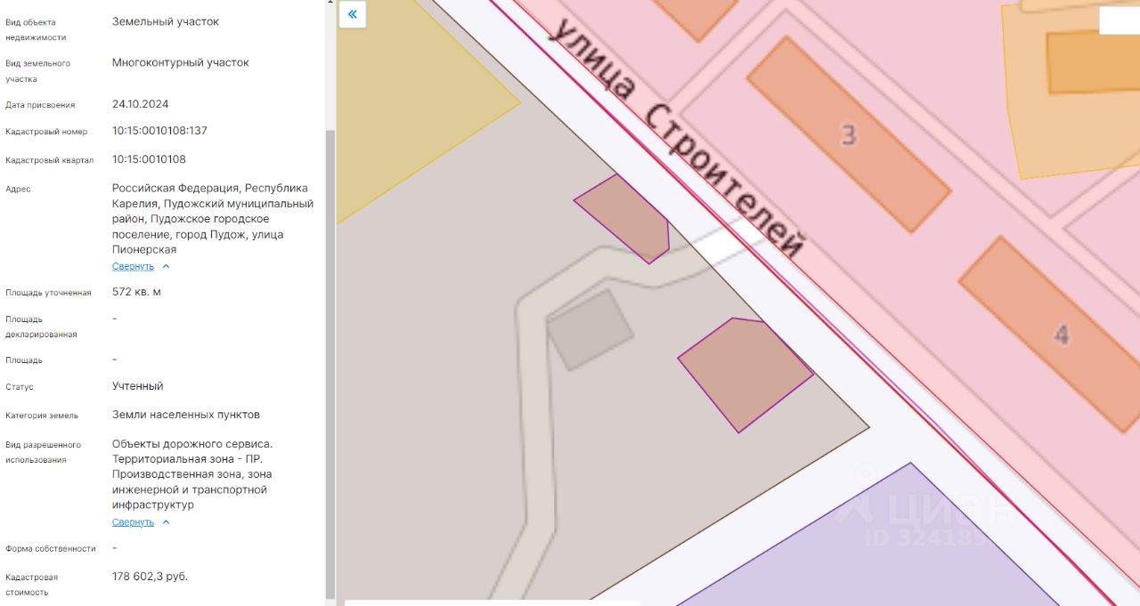 Право заключения договора аренды земельного участка из земель населенных пунктов, имеющего кадастровый номер 10:15:0010108:137, площадью 572 кв.м, местоположение: Российская Федерация, Республика Карелия, Пудожский муниципальный район, Пудожское городское поселение, город Пудож, вид разрешенного использования "Объекты дорожного сервиса". Территориальная зона Производственная зона, зона инженерной и транспортной инфраструктур (ПР).