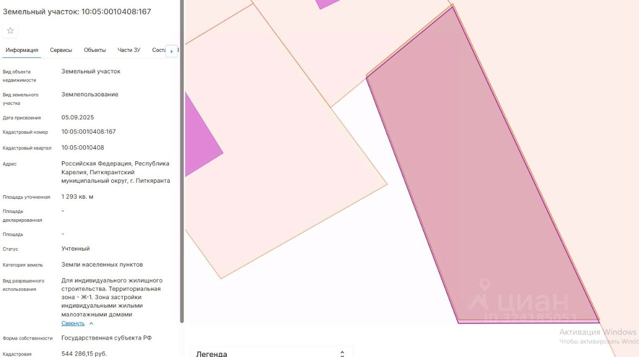 площадь 1293 кв.м, местоположение: Российская Федерация, Республика Карелия, Питкярантский муниципальный округ, г. Питкяранта, вид разрешенного использования Для индивидуального жилищного строительства.