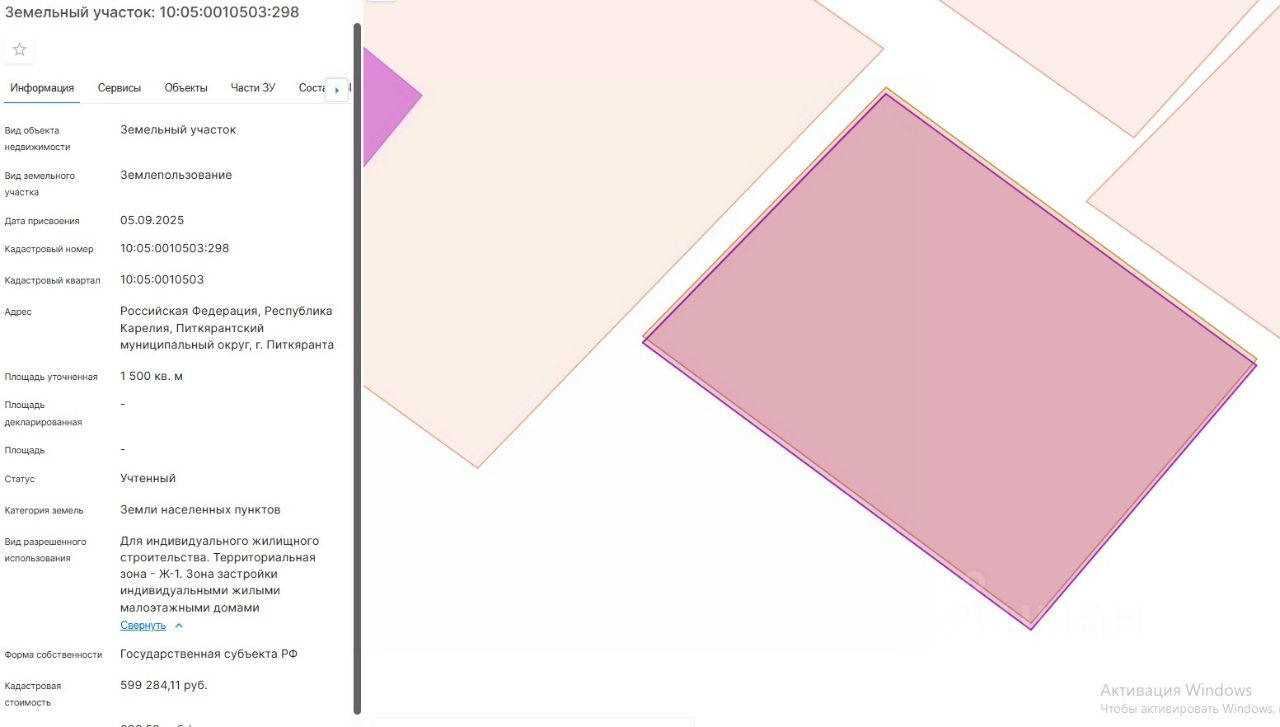 площадь 1500 кв.м, местоположение: Российская Федерация, Республика Карелия, Питкярантский муниципальный округ, г. Питкяранта, вид разрешенного использования Для индивидуального жилищного строительства.