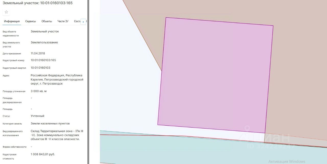 Право заключения договора аренды земельного участка из земель населенных пунктов, имеющего кадастровый номер 10:01:0160103:165, площадью 3000 кв.м, местоположение: Российская Федерация, Республика Карелия, Петрозаводский городской округ, г. Петрозаводск, вид разрешенного использования - склад. Территориальная зона - (Пк III -V). Зона коммунально-складских объектов III -V классов опасности.