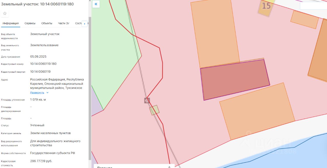 Право заключения договора аренды земельного участка из земель населенных пунктов, имеющего кадастровый номер 10:14:0060119:180, площадью 1079 кв.м, местоположение: Российская Федерация, Республика Карелия, Олонецкий национальный муниципальный район, Туксинское сельское поселение, деревня Тукса, вид разрешенного использования Для индивидуального жилищного строительства.