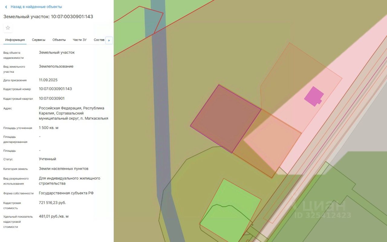 Право заключения договора аренды земельного участка из земель населенных пунктов, имеющего кадастровый номер 10:07:0030901:143, площадью 1500 кв. м, местоположение: Российская Федерация, Республика Карелия, Сортавальский муниципальный округ, п. Маткаселькя, вид разрешенного использования: "Для индивидуального жилищного строительства".