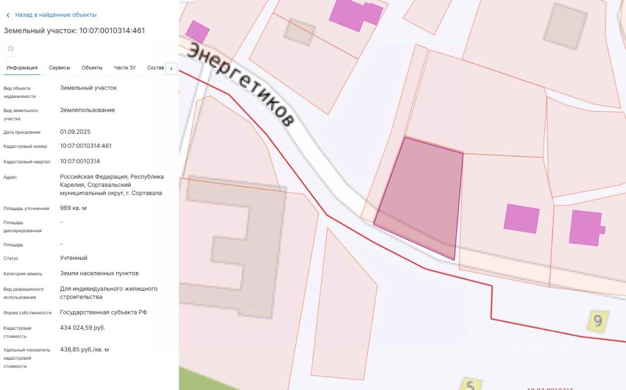 Право заключения договора аренды земельного участка из земель населенных пунктов, имеющего кадастровый номер 10:07:0010314:461, площадью 989 кв. м, местоположение: Российская Федерация, Республика Карелия, Сортавальский муниципальный округ, г. Сортавала, вид разрешенного использования: "Для индивидуального жилищного строительства".