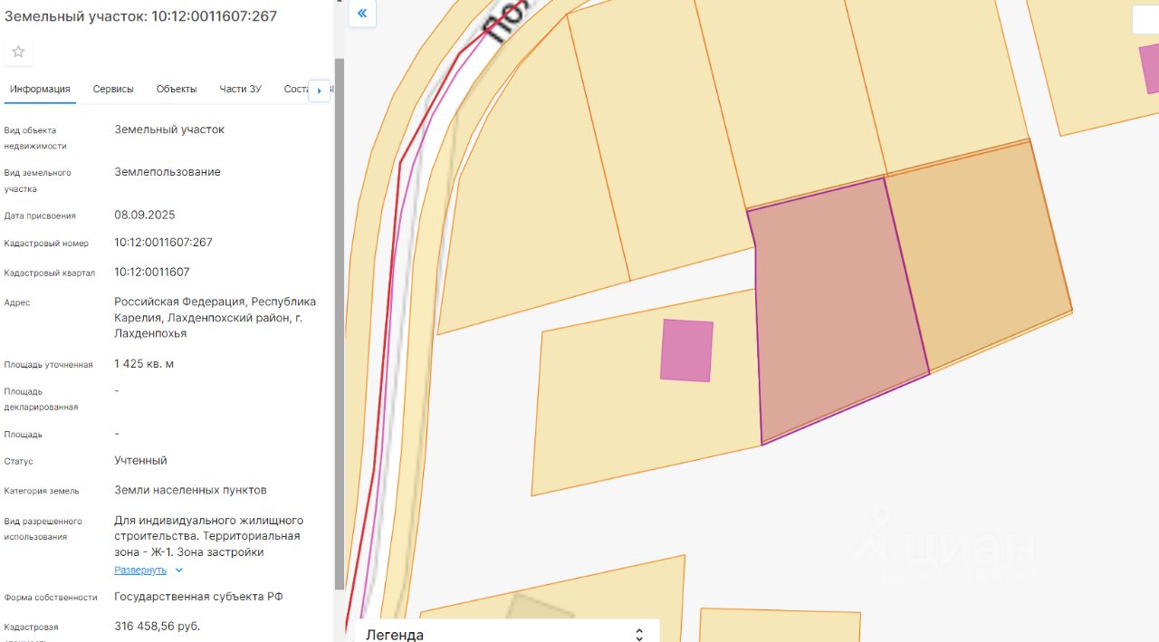 Право заключения договора аренды земельного участка из земель населенных пунктов, имеющего кадастровый номер 10:12:0011607:267, площадью 1425 кв.м, местоположение: Российская Федерация, Республика Карелия, Лахденпохский муниципальный округ, г. Лахденпохья, вид разрешенного использования Для индивидуального жилищного строительства.