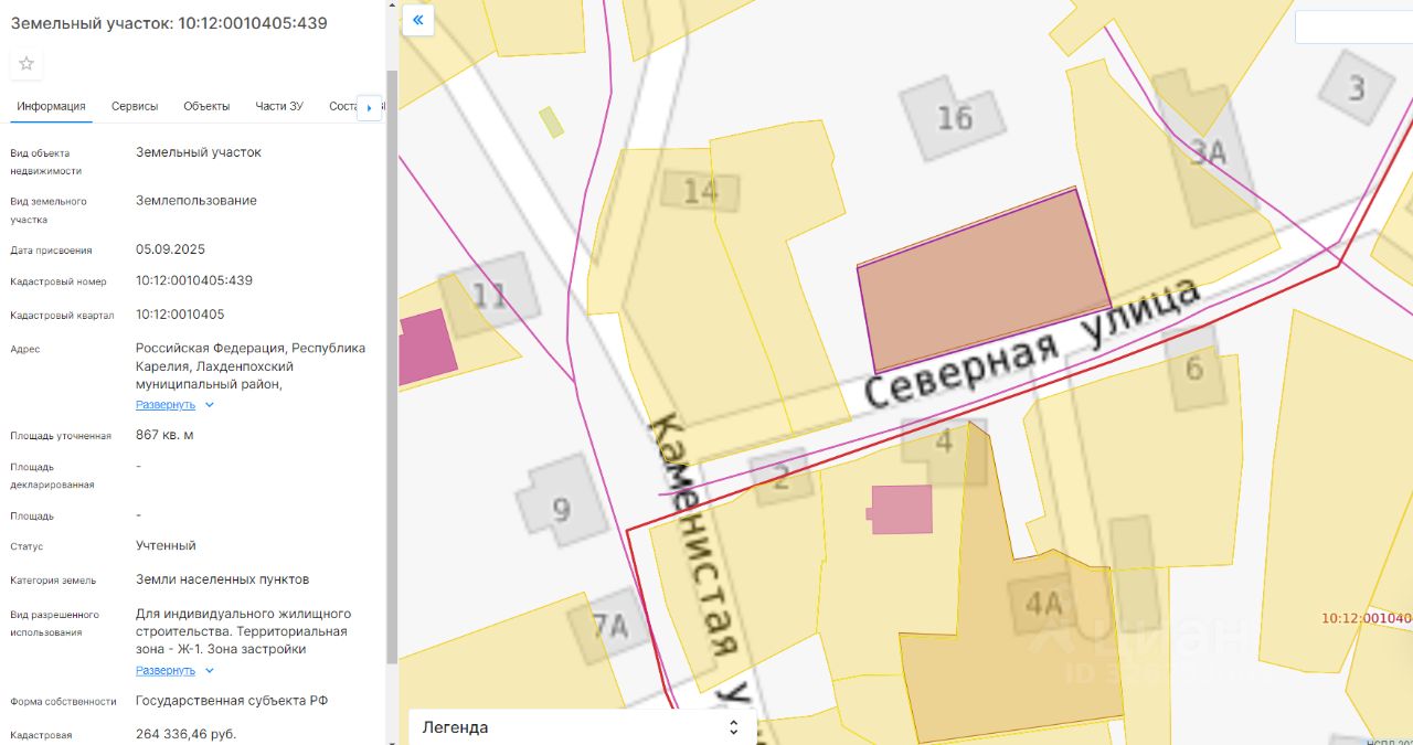 Право заключения договора аренды земельного участка из земель населенных пунктов, имеющего кадастровый номер 10:12:0010405:439, площадью 867 кв.м, местоположение: Российская Федерация, Республика Карелия, Лахденпохский муниципальный округ, г. Лахденпохья, вид разрешенного использования Для индивидуального жилищного строительства.