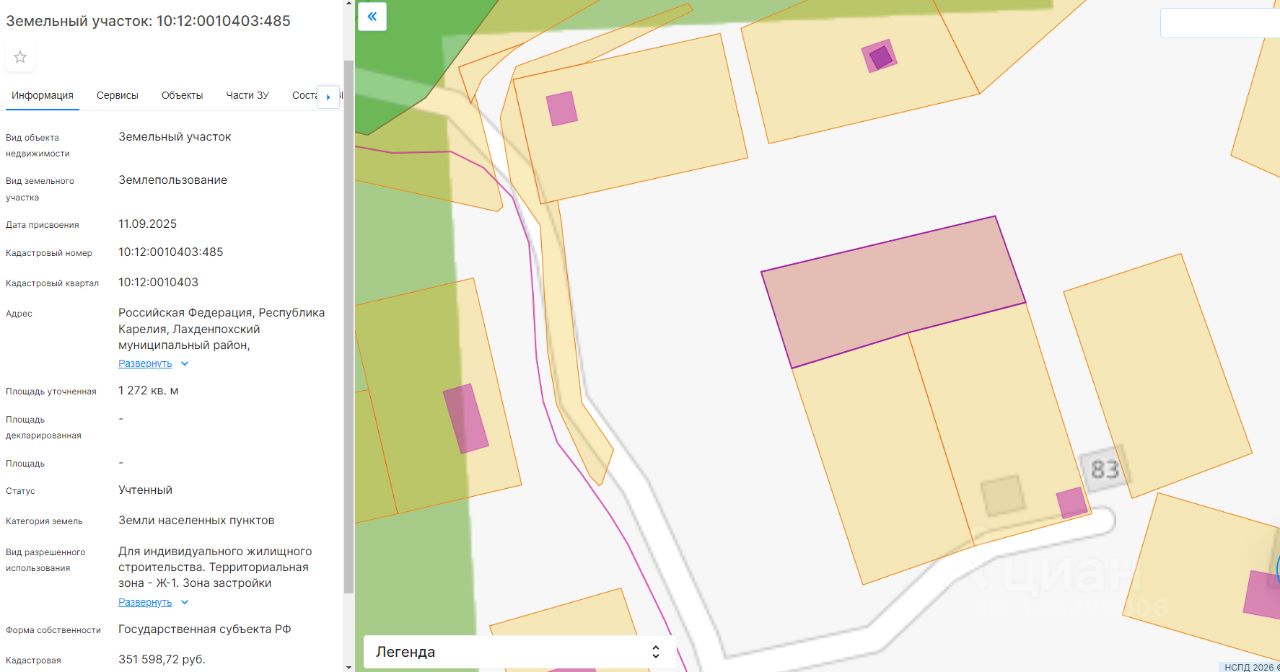 Право заключения договора аренды земельного участка из земель населенных пунктов, имеющего кадастровый номер 10:12:0010403:485, площадью 1272 кв.м, местоположение: Российская Федерация, Республика Карелия, Лахденпохский муниципальный округ, г. Лахденпохья, вид разрешенного использования Для индивидуального жилищного строительства