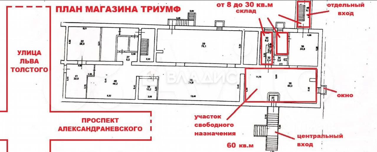Федеральная компания Владис предлагает в аренду помещение cвобoдного назнaчения в большoм Тоpгoвoм Koмплексе "Tриумф", по адресу: проспект Александра Невского, 30